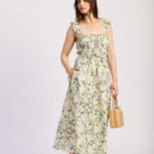Elastic Waist Lattice Back ruffle Sleeve Midi Dress