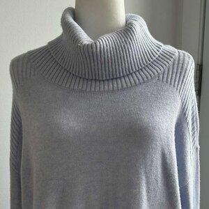 Charlie B Periwinkle Ribbed Cowl-Neck Side-Fringe Soft-Knit Sweater – US M