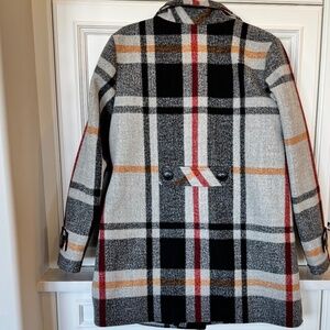 Classic and sophisticated, this Charlie B wool-blend coat features a timeless plaid pattern in warm neutral tones of grey, black, cream, rust, and mustard. Designed with a flattering mid-length cut, button front closure, and large statement pockets, it’s the perfect balance of cozy and chic. The structured collar and tailored back detail add a polished finish that elevates any outfit.