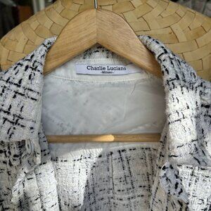 Charlie Luciano Tweed Oversized Over Shirt Black and White Jacket Sz XS Shacket