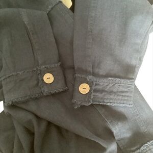 Charlie Paige Raw Edge Linen Bomber Jacket, Navy, Large