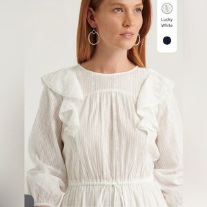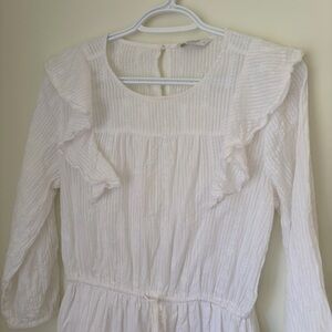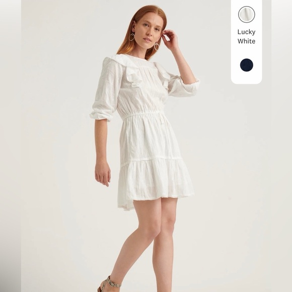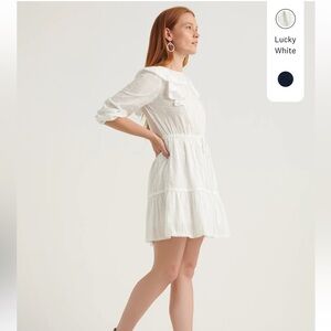 Step out in style with this elegant white ruffle dress. Perfect for any occasion, this dress offers a chic and timeless look.