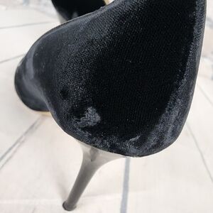 Gently pre-owned condition. Minor surface scuffs associated with use. There are rub spots in the velvet. A few deeper marks. Scuff in left footbed.