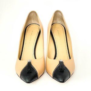 Description: Charlotte Olympia two tone pumps with zipper/tassel detail
