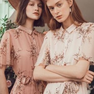 Color Apricot/Pink Type Dress Waist Type High Waist Details Butterfly Sleeves Season Summer Fabric Lightweight, Non-stretch Chiffon Composition 91%-95%Chiffon Model Information Height - 68.89''/175cm Bust - 30.70''/78cm Waist - 23.62''/60cm Hipline - 34.64''/88cm Model Size - S Hand wash or dry clean? Hand Wash/Dry Clean