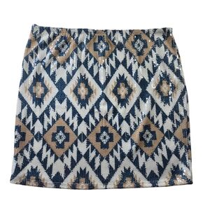 Charlotte Russe Blue and White Mini Sequin Pencil Skirt With Geometric Design XL