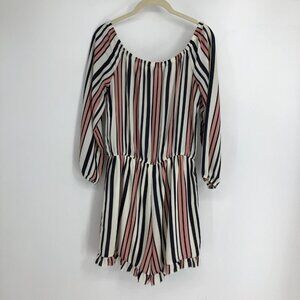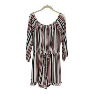 Charlotte Russe Blush Toned Pin Striped Off The Shoulder Short Romper size M