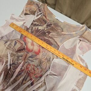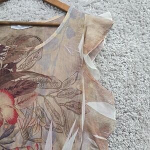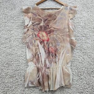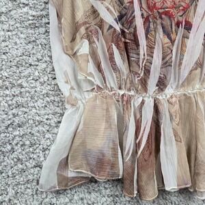 Charlotte Russe Floral Ruffle Top Womens Large Earthy Boho Mesh Peplum Blouse
