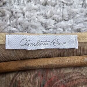 Charlotte Russe floral ruffle mesh top with elastic waist and peplum hem. Soft boho style with earthy palette and light drape — romantic layering piece.