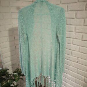 Charlotte Russe Ladies Size Large Fringed Edge Lightweight Mint Green Cardigan