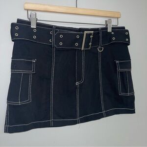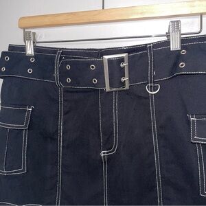 Charlotte Russe Mini Skirt Women's Size Large Black Belted Twill Cargo NWT