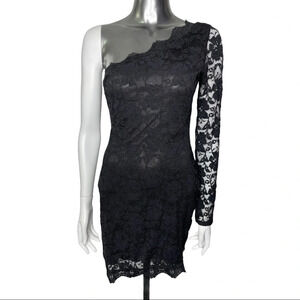 Charlotte Russe One Shoulder Black Lace Bodycon Size Small
