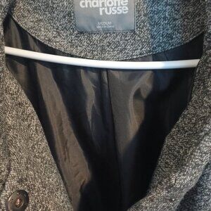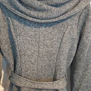 Soft, warm and cozy Charlotte Russe belted knit jacket with snuggly hood and side pockets. 4 snap closures in the front.