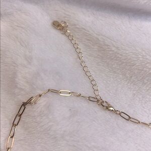 Elegant gold chain necklace with charming pink accents. Perfect for adding a touch of whimsy to any outfit.