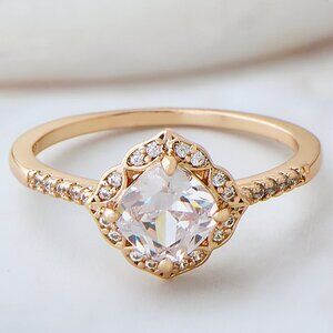 Beautiful Charmed Gold Antique / Vintage-Style ring, in ring size 6, made with Rhodium and finished in 10k Champagne Gold.
