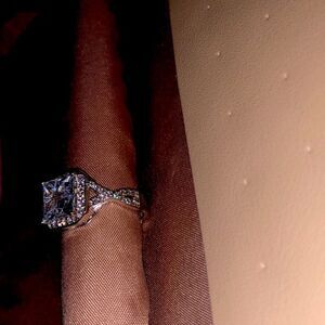 Charmed Aroma Silver Size 7 square shaped ring with smaller stones surrounding and halfway down the band. Worth 60$
