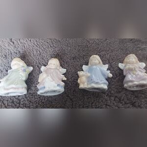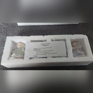 Delight in the charm of this angel figurine set, featuring soft pastel colors. Perfect for adding a touch of serenity to your home decor. new.in box only removed 2 take photes