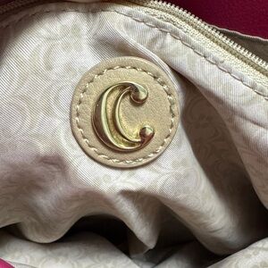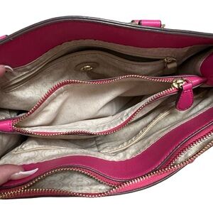 Bright and stylish hot pink tote bag by Charming Charlie. Features dual top handles, a detachable/adjustable crossbody strap, gold-tone hardware, and a structured silhouette. The interior has multiple compartments and zipper pockets, perfect for organization.