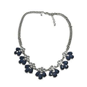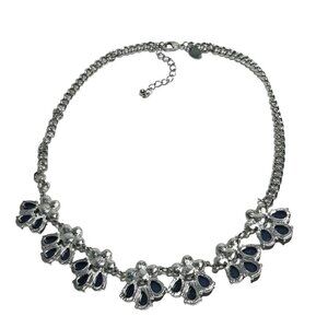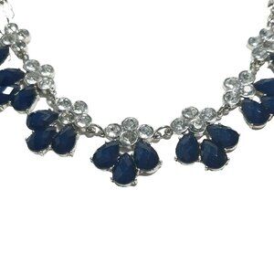 Charming Charlie Statement Necklace Navy Blue Rhinestone Crystal Silver Tone