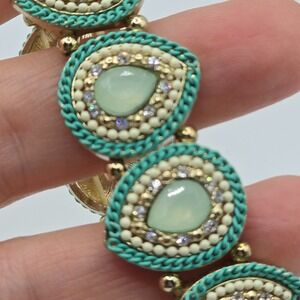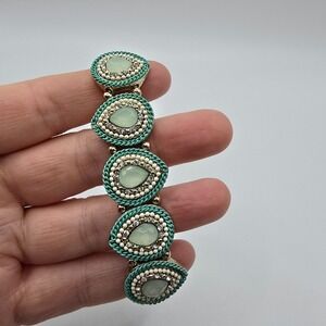 Charming Charlie Teal Teardrop Stretch Bracelet Gold Tone