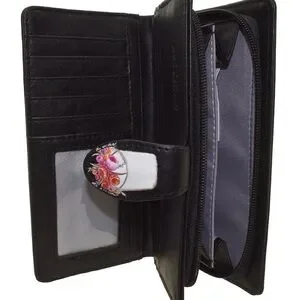 This delightful wallet features a charming cow print design, perfect for adding a touch of whimsy to your accessories. The black background enhances the playful artwork, making it a standout piece.