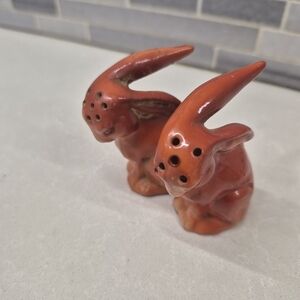 Adorable red rabbit figurines salt and peper shakers . Ideal for decor or collection. made in japan