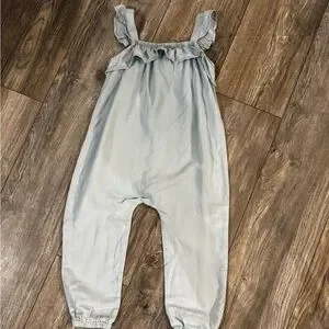 This charming sky blue jumpsuit features delightful ruffle details, offering both comfort and style for your child.