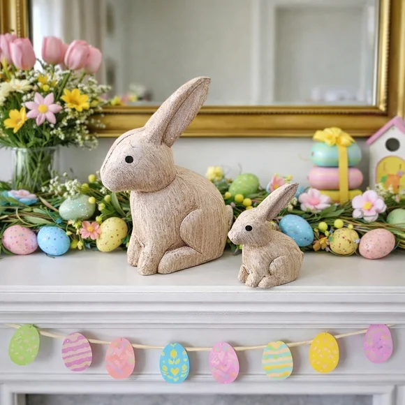 Adorable set of white rabbit figurines. Perfect for home Easter decor.