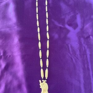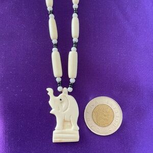 Charming vintage hand carved elephant necklace. New. Made in Ghana. Carved from bone. Elephant is 1.5” long and .75” wide. Total length is 13”. $25