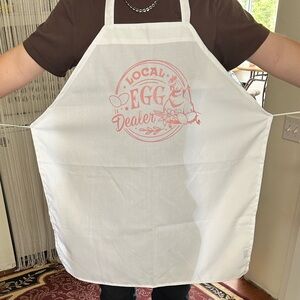 Delight in cooking with this charming white apron featuring a playful pink design. Ideal for home chefs.