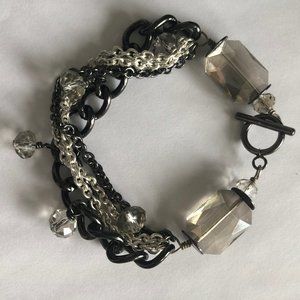 Adorable multi-strand bracelet - 2 chains of silver-tone, 2 strands of black/pewter. Strung with various crystal