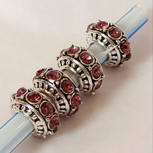Charms Set of 4 Silver Tone and Amethyst Colored Stones