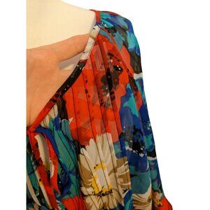 Charter Club Floral Sheer Blouse Pleated Spring Colourful Office Elegant Flowy L