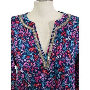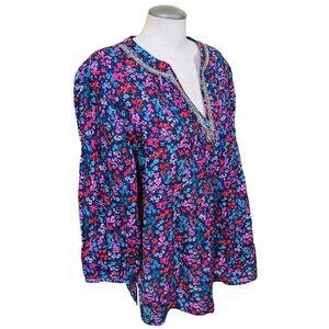Charter Club Luxury Linen Tunic Top Womens XL Ditsy Floral Rhinestone Pintuck