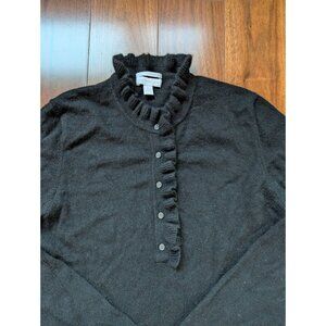 Wrap yourself in the luxury of Charter Club's 100% cashmere sweater, a timeless addition to your wardrobe. With ruffle sleeves and neck. The buttons do open but not all the way to the bottom.