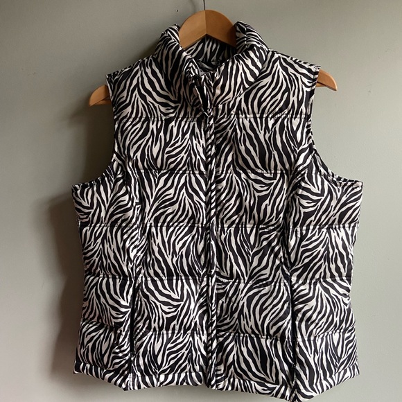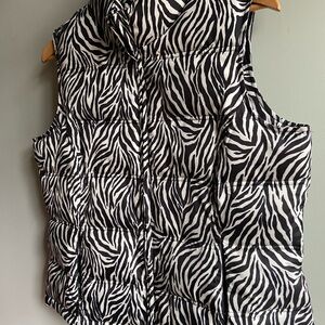 Stylish zebra pattern vest by Charter Club. Striking black and white design. Perfect for layering.