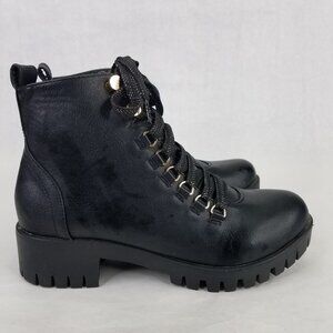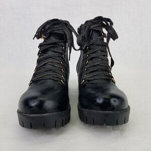 Chase + Chloe Storm Combat Boots Women 9 Black Block Heel Lug Sole Glitter Laces