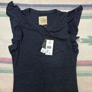 Chaser Brand Women’s XS Mini Ruffled Sleeve Navy Blue Dress NWT Rayon Blend Soft