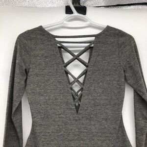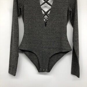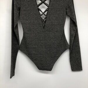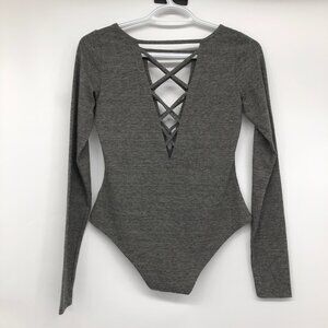 Chaser Grey Heathered Long Sleeve Criss Cross Body Suit size S