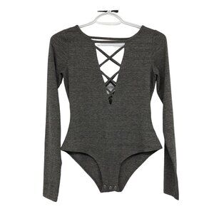 Chaser Grey Heathered Long Sleeve Criss Cross Body Suit size S
