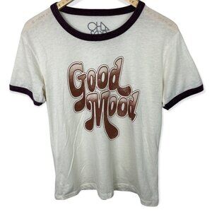 Chaser Retro Good Mood Ringer Tee Size Medium White Brown T-Shirt Bohemian Top