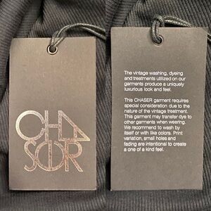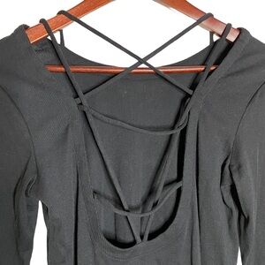 Chaser Ribbed Black Tunic Long Sleeve T-Shirt w Open Back Criss Cross Straps M