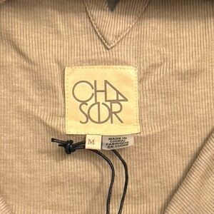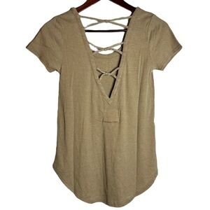 Chaser Ribbed Scoop Neck Open Back with Knotted Criss Cross Straps Tan T-shirt M