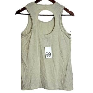 Chaser Sleeveless Tank Top Keyhole Back Vent Raw Hem Gauze Vanilla Ivory Medium