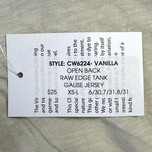 Features: Open Back Raw Edge Tank Gause Jersey, sample, back vent, keyhole, longer tunic length, gauze