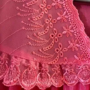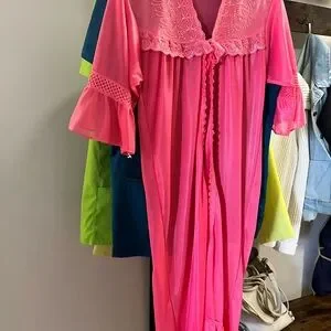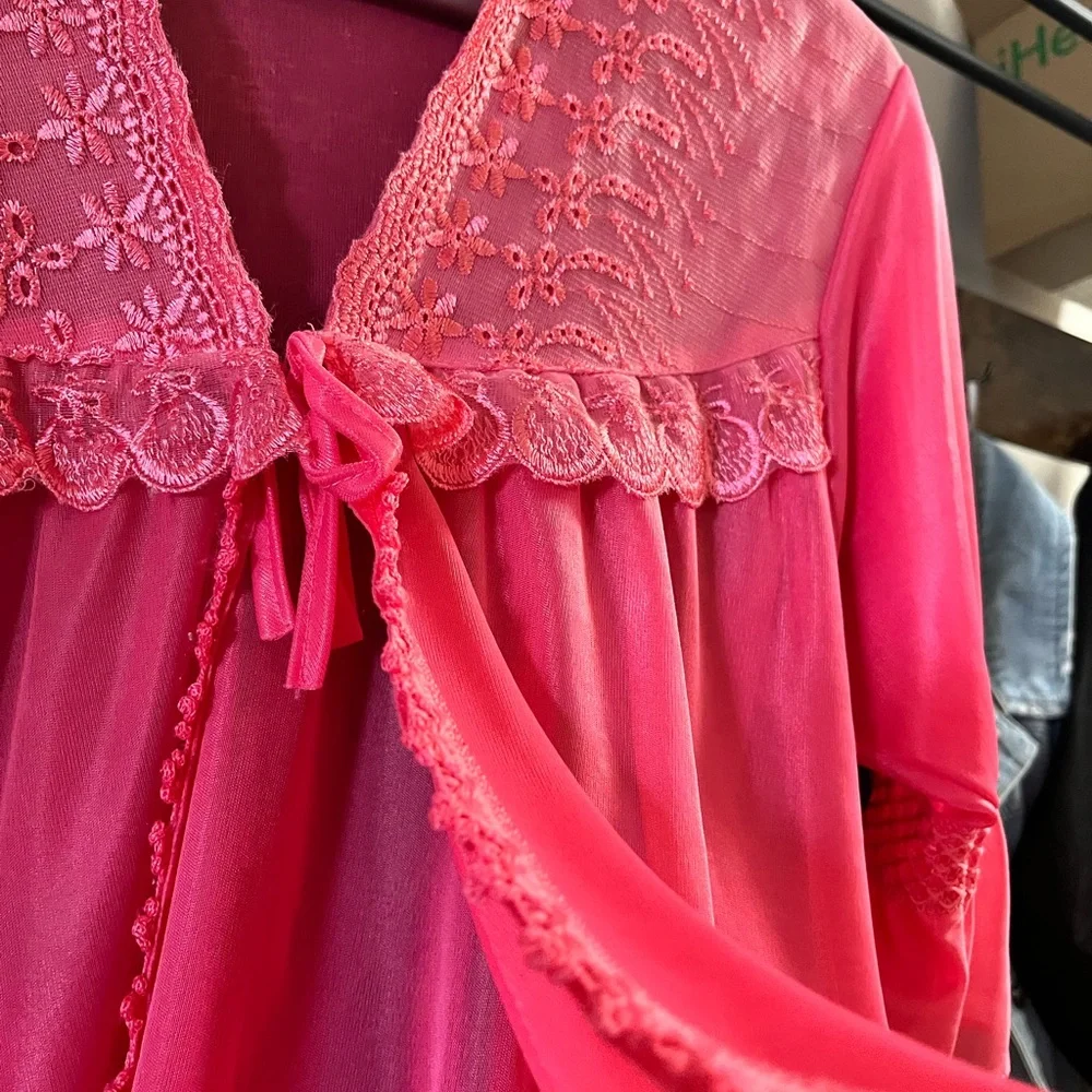 Soft and stylish pink robe with intricate lace details. Ideal for relaxation.