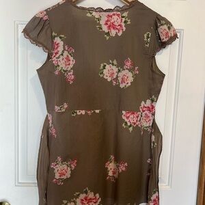 Boho Green V-Neck Floral Blouse with Tie by Chaudry KC Size Large