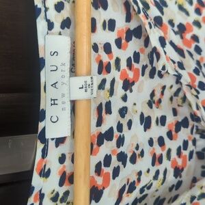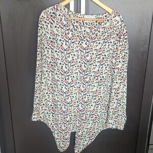 Chaus Red & Blue Asymmetrical Long Sleeve Blouse Front Tie Detail Blouse - L NWT