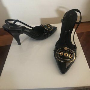 Chaussures en cuir verni noires avec ornements OR, de taille 5 (35) Jamais portés Talon de 2.5 pouces