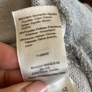 Iconic Cheap Monday skull sweatshirt. Grey cotton / poly blend and black skull. It’s in clean condition with no stains but note the skull is showing some cracking (see photos), still looks great and has plenty of life left.
